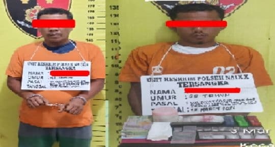 Kedua tersangka berinisial MR (28) dan IS (42) diamankan sekitar pukul 21.30 WIB di sebuah rumah yang diduga kerap dijadikan tempat transaksi narkoba di wilayah tersebut.