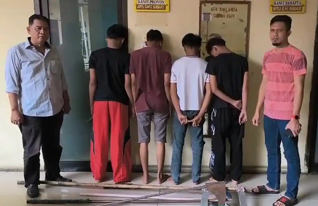 POSMETRO MEDAN – Aksi tawuran antar kelompok remaja kembali pecah di wilayah Kecamatan Medan Area, Kota Medan. Dalam kejadian yang berlangsung pada Rabu (15/4/2026) sekitar pukul 00.10 WIB di Jalan Bromo, petugas Polsek Medan Area berhasil mengamankan empat anak di bawah umur yang diduga terlibat langsung dalam insiden tersebut.