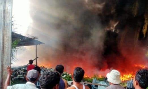 “Tidak ada korban jiwa, sumber api berasal dari sampah yang dibakar korban di belakang gudang,” ujarnya.