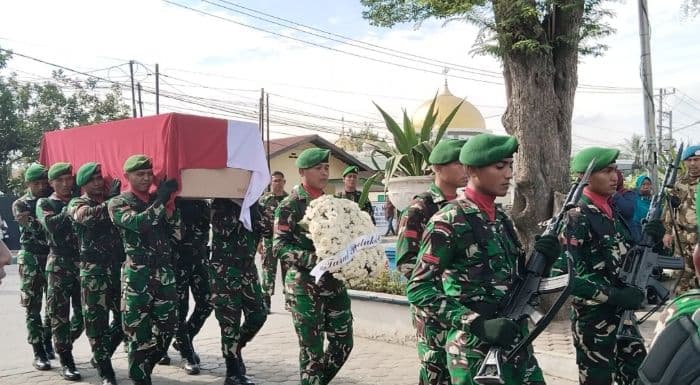 Setelah jenazah Almarhum disalatkan di halaman rumah duka, upacara persemayaman hingga pemberangkatan jenazah secara militer dipimpin Kasdam l/BB pun dilakukan pada Rabu (29/4/2026) pagi.