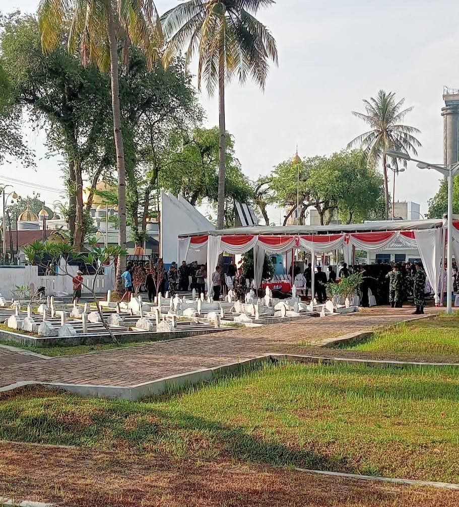 Proses pemakaman berlangsung aman dan lancar dengan penutupan Jalan Imam Bonjol didepan Makam Pahlawan Lubuk Pakam.( Wan)