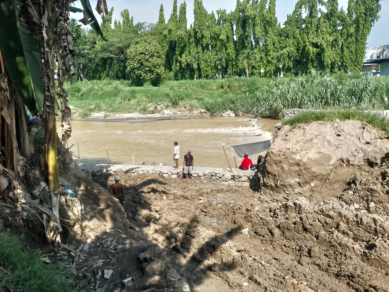 Pasalnya dari pantauan, Pemerintah melalui PUPR dan Balai Wilayah Sungai melakukan pemasangan dinding batu dan timbunan tanah untuk membendung tanggul sungai yang sebelumnya menjadi penyebab utama banjir dikawasan itu.