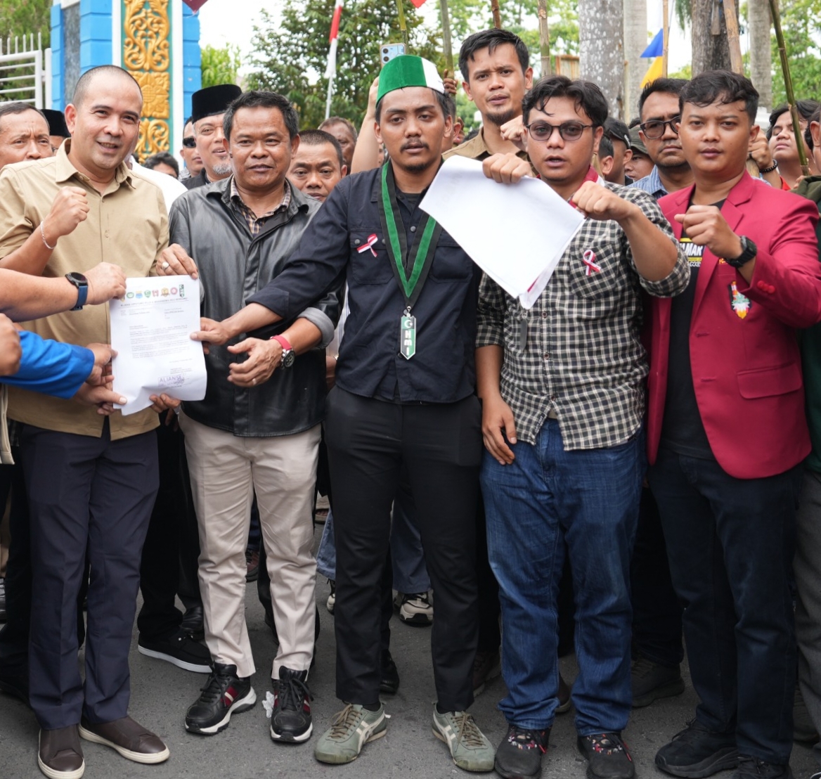 Mahasiswa Cipayung Plus saat Aksi dan menyerahkan tuntutan kepada Ketua DPRD Deliserdang Zakky Shahri