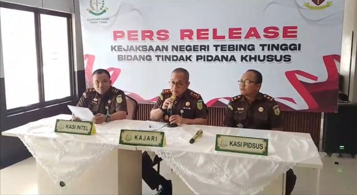 Kepala Kejaksaan Negeri Tebing Tinggi Anthony Nainggolan, didampingi oleh Kasi Intel (Kastel) serta Kasi Pidsus menetapkan tersangka berdasarkan Surat Penetapan Tersangka Nomor TAP-01/L.2.16/Fd.2/04/2026.