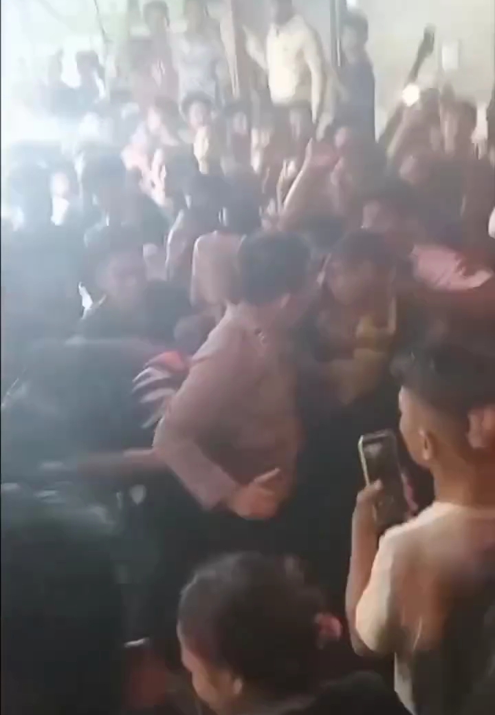 Melihat ada maling sepeda motor ketangkap, warga spontan berdatangan hingga ratusan orang berkumpul dalam sekejap waktu, beberapa warga mengamankannya ke dalam salah satu ruko dan menginterogasinya. Pelaku sempat membantah kalau ia hendak mencuri tapi warga yang geram langsung menghajarnya hingga babak belur.