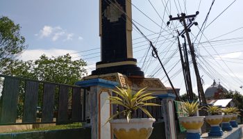 POSMETRO MEDAN – Besi Kuningan lempengan plakat Tugu piala Adipura Kecamatan Lubuk Pakam di Jalan Lintas Sumatera tepatnya di simpang Kelurahan Syahmad