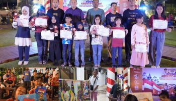 Posmetromedan.com – Aksi melukis berbahan limbah plastik Edi Suranta Ginting serta kanak-kanak yang mengikuti lomba mewarnai menyemarakkan perhelatan Beranda Kreatif Medan, Sabtu