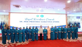 POSMETRO MEDAN – Pj. Ketua TP PKK Kabupaten Langkat, Ny. Uke Retno Wahyuni Faisal Hasrimy, menghadiri Rapat Koordinasi Daerah (Rakorda) TP PKK