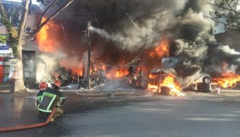 POSMETRO MEDAN Kebakaran yang terjadi di Jalan Flamboyan Raya, Tanjung Sari, Kecamatan Medan Selayang, Kota Medan, pada Jumat (9/8/24) sore menghanguskan 9