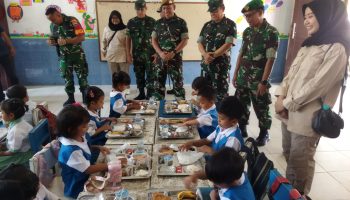 Koramil Lubuk Pakam Layani Siswa SDN 104242 Deli Serdang Makan Bergizi Gratis