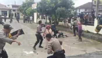 POSMETRO MEDAN – Sekelompok massa menyerang Polres Dairi, memaksa koordinator aksi mereka saat bentrok dengan karyawan PT. Gruti beberapa waktu lalu