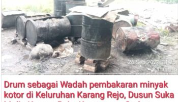 POSMETRO MEDAN – Pengelolaan minyak kotor (Miko) yang berada di Jalinsum Binjai-Langkat, Keluruhan Karang Rejo, Dusun Suka Mulia Karang Rejo, Kec. Stabat,