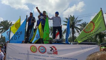 POSMETRO MEDAN – Puluhan anggota Federasi Serikat Pekerja Kimia, Energi dan Pertambangan Serikat Pekerja Seluruh Indonesia (FSP KEP SPSI) dari Siantar–Simalungun menggelar