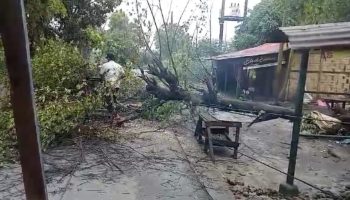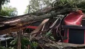 POSMETRO MEDAN – Bencana alam hujan deras dan disertai angin kencang melanda mengakibatkan pohon besar tumbang, nyaris menimpa rumah warga di Desa