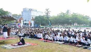 POSMETROMEDAN.com – Bupati Deliserdang, H Ashari Tambunan bersama Wakil Bupati HM Ali Yusuf Siregar beserta ribuan umat Muslim mengikuti Salat Idul Adha