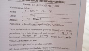 Amangoi… !!!! Perpanjang SIM C Di Deliserdang Rp230 ribu, Wajib Suket Kesehatan dan Tes Psikologi