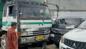 Posmetromedan.com – Satu unit truk tronton Mitsubishi Fuso BK 8050 BS yang datang dari Kota Binjai menuju Deli Tua menabrak 4 unit mobil