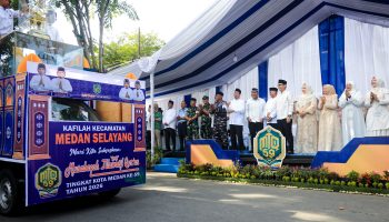 POSMETRO MEDAN – Suasana Jalan Gatot Subroto, Kecamatan Medan Sunggal, dipenuhi nuansa religius dan keberagaman budaya saat ribuan kafilah dari 21 kecamatan