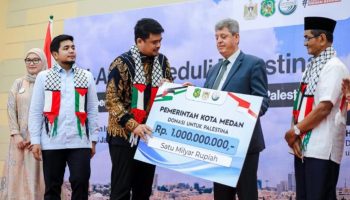 Posmetromedan.com – Wali Kota Medan, Bobby Nasution menyerahkan donasi senilai Rp1 miliar untuk negara Palestina yang diterima Duta Besar (Dubes)-nya sebagai bentuk